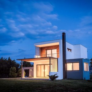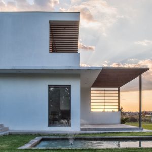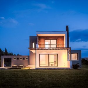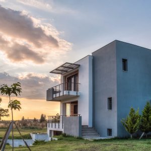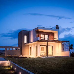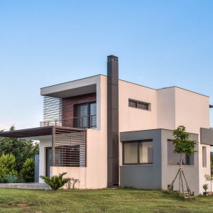 Αρχιτεκτονική μελέτη και κατασκευή διώροφης μονοκατοικίας, στην περιοχή Λουτρά Θέρμης. Λίγη ώρα έξω από την Θεσσαλονίκη, σε μια περιοχή με χαρακτηριστιά εξοχής, μια κατοικία 180 τ.μ. , εισάγει αρχιτεκτονικές ποιότητες στην καθημερινότητα των ιδιοκτητών της, προσφέροντας ένα ζεστό και ασφαλές περιβάλλον.